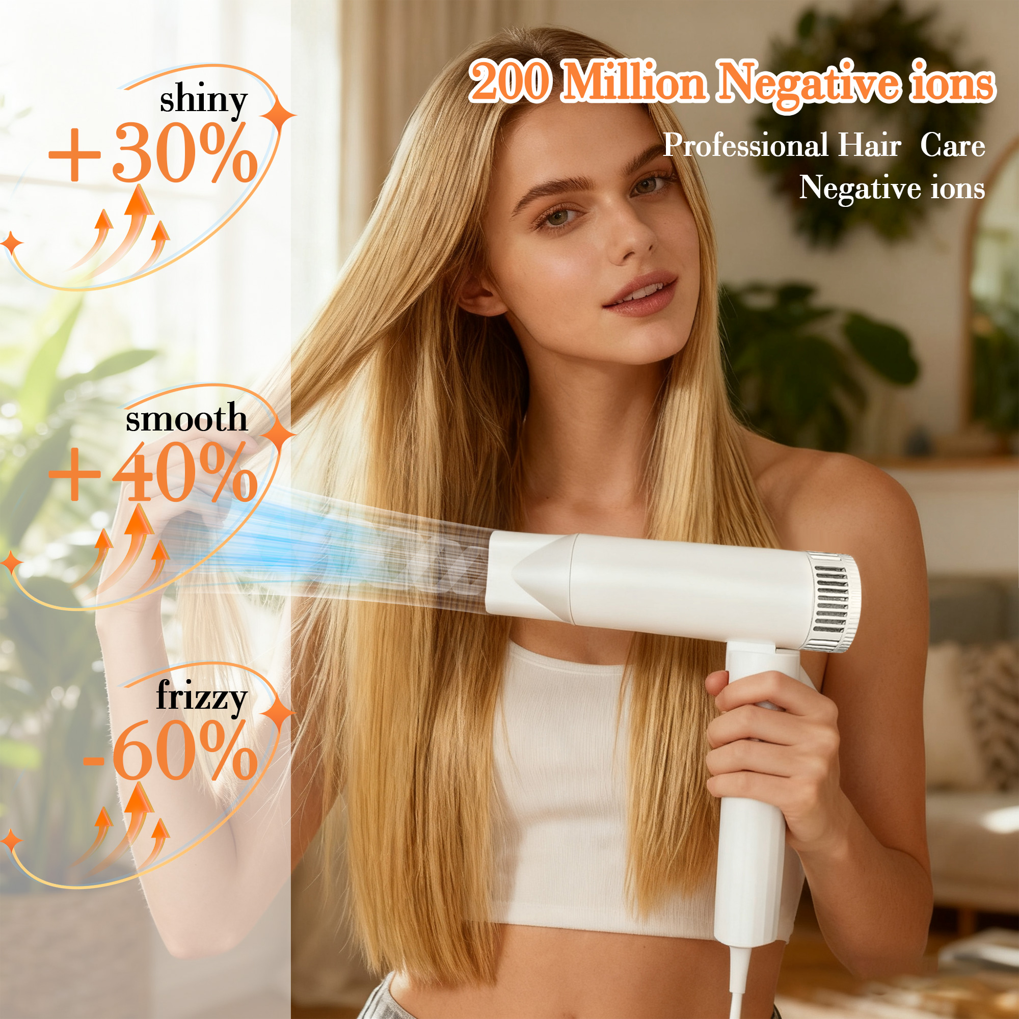 High-Concentration Negative Ions, Tame Frizz & Boost Shine:
